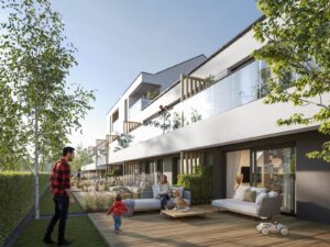 Możliwość zakupu apartamentu z ogródkiem, lub przestronnym tarasem pozwala na spędzanie większej ilości czasu na świeżym powietrzu.